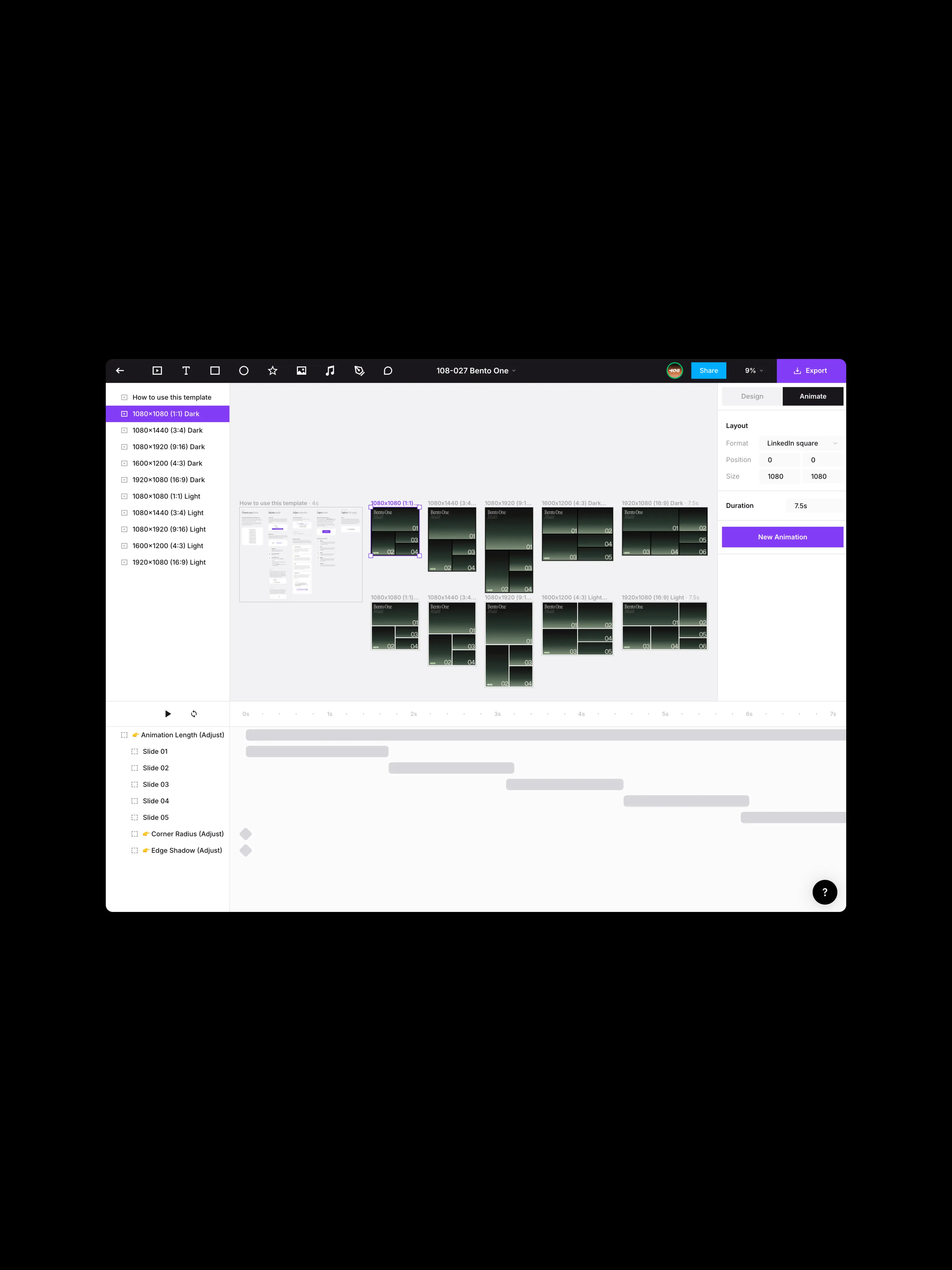 Key settings like animation length, blur, corner radius, edge shadow, scale or rotation are exposed and ready to tweak. No digging through layers. Everything important is already set up. Built to be controlled.