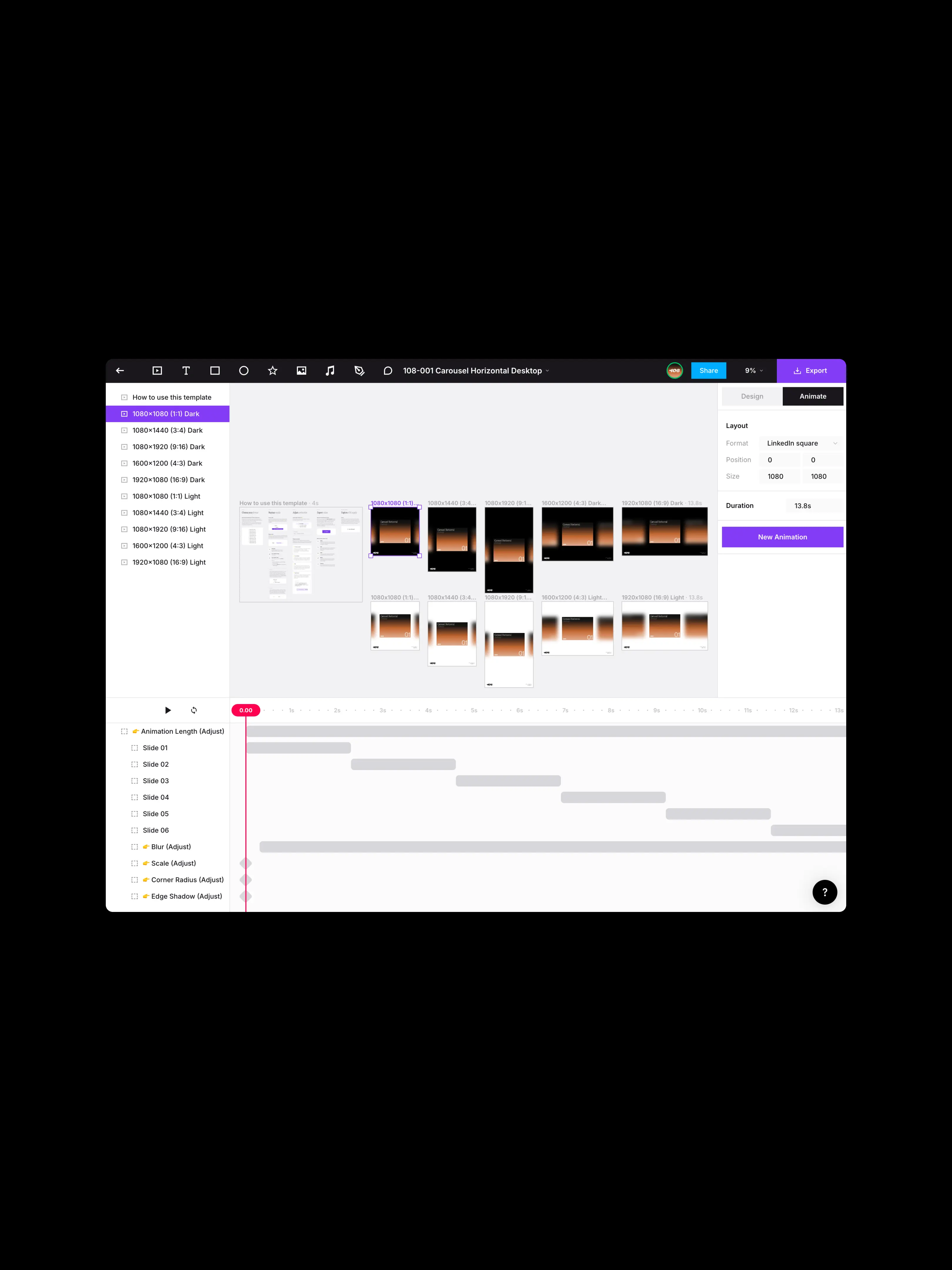 Key settings like animation length, blur, corner radius, edge shadow, scale or rotation are exposed and ready to tweak. No digging through layers. Everything important is already set up. Built to be controlled.